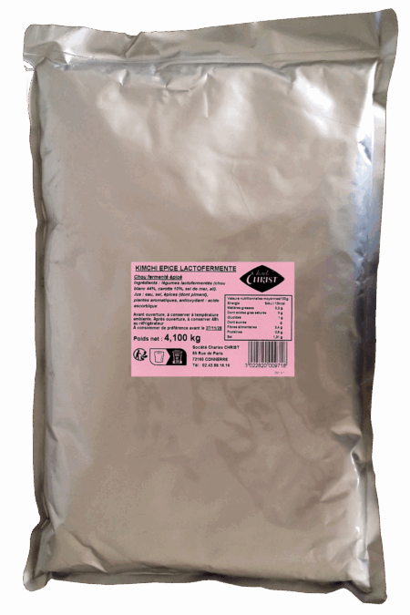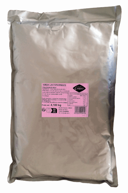 Légumes lactofermentés (chou blanc 44%, carotte 10%, sel de mer, ail). Jus : eau, sel, épices, plantes aromatiques, antioxydant : acide ascorbique.